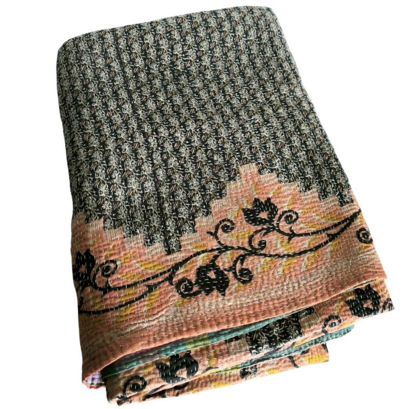 Les recto et verso sont différents, chaque plaid est une pièce unique car il s'agit d'un patchwork réalisé à partir de saris anciens en coton