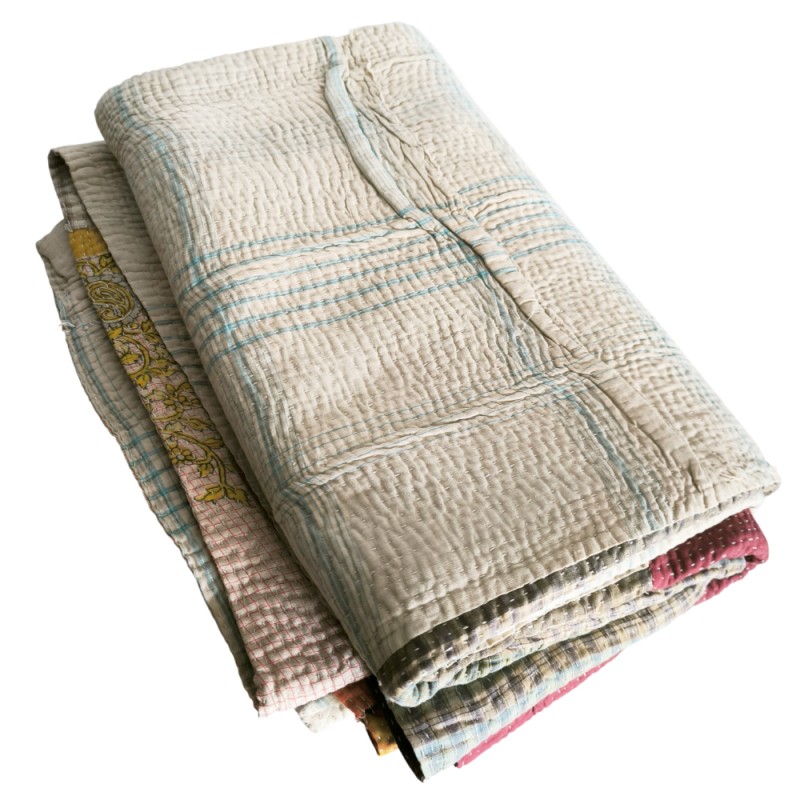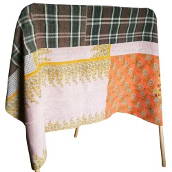 Les recto et verso sont différents, chaque plaid est une pièce unique car il s'agit d'un patchwork réalisé à partir de saris anciens en coton
