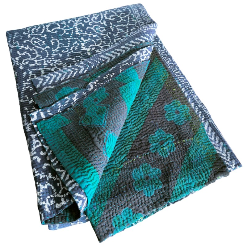 Conseil d'expert : Pour sublimer ce patchwork, mariez-le à des draps en lin blanc ou écru. Le contraste entre la simplicité du lin et la richesse des motifs du coton ancien créera une atmosphère sereine et chaleureuse.