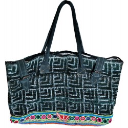 Laine tissée avec décor en perle multicolores et anses en cuir,